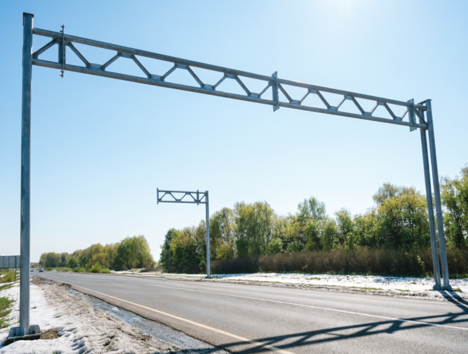 Запас прочности: опоры рассчитаны на колоссальные ветровые нагрузки и вес тяжелого оборудования — от массивных табло переменной информации до систем видеофиксации.
